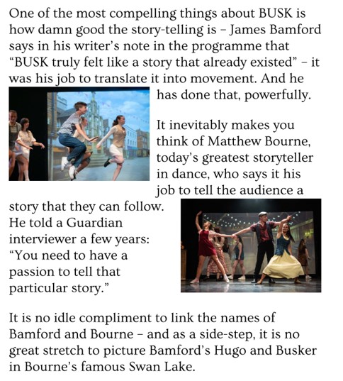❝ It is no idle compliment to link the names of Bamford and Bourne – and as a side-step, it is no great stretch to picture Bamford’s Hugo and Busker in Bourne’s famous Swan Lake ❞